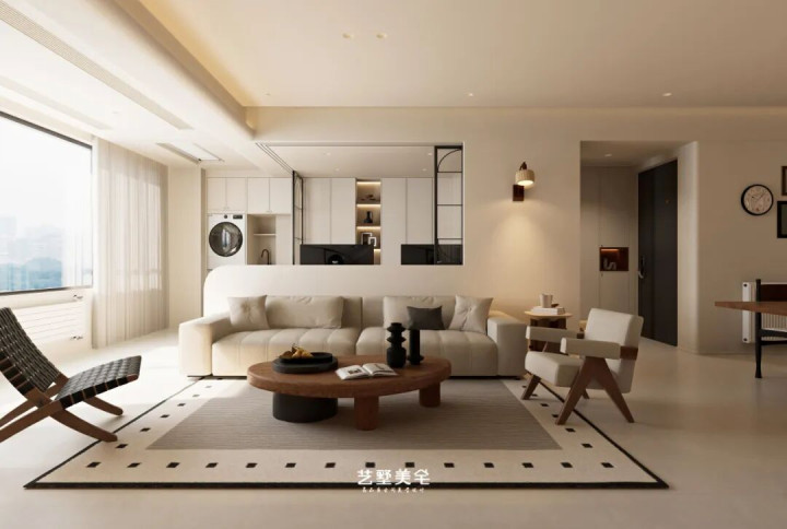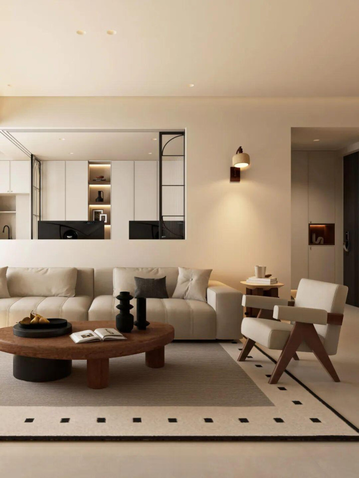 本案为年轻高知夫妇量身打造,旨在构筑一个兼具理性功能与感性温度的理想居所。设计以“现代中古”为核心理念,巧妙融合现代简约的空间骨架与中古风格的软装灵魂,摒弃繁复装饰,回归生活本真,最终营造出一种知性、慵懒且随性的居家氛围。