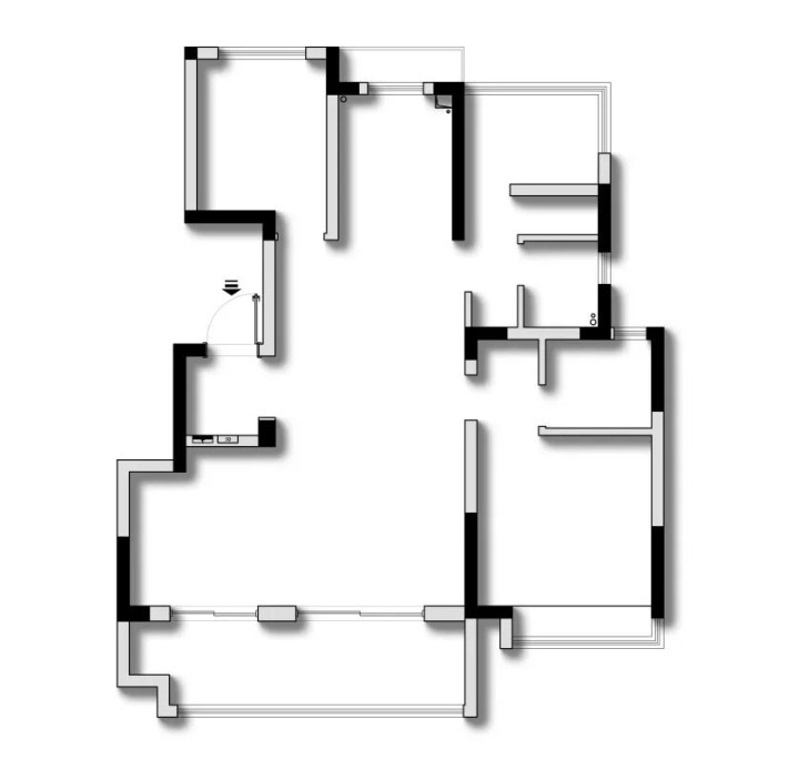 ❶门厅拆除部分墙体,让采光进入,L形鞋柜满足日常收纳。