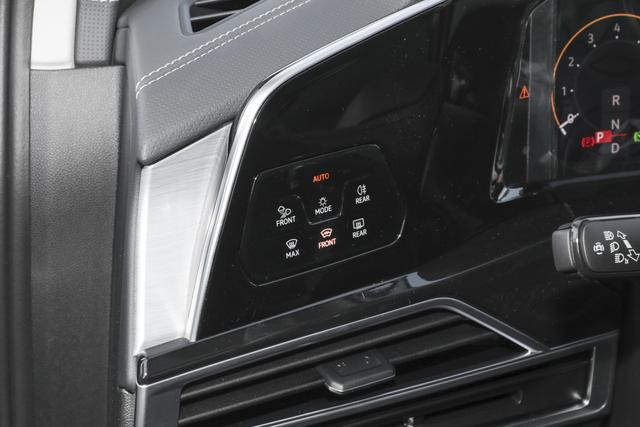 普通版与R-Line版本在进气格栅区域设计语言有所不同。R-Line版本采用内嵌黑色网格结构的前格栅,搭配具有运动特征的前包围造型。普通版本格栅则运用了镀铬装饰元素,前包围的线条处理也更显沉稳。