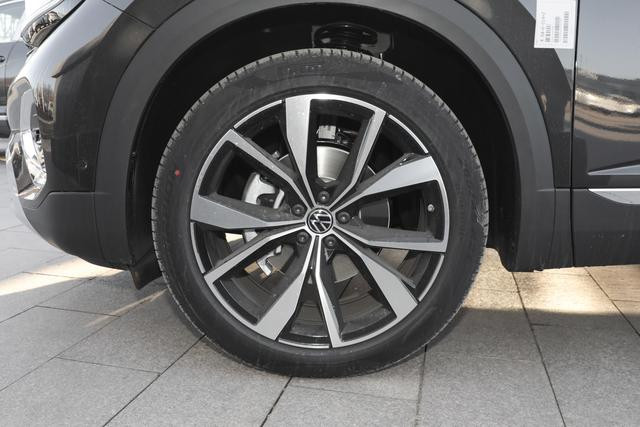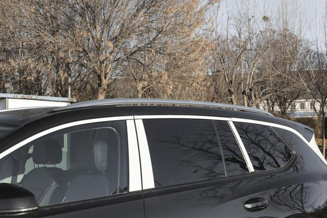 侧面轮廓与现款车型基本一致,保留了传统的车门把手设计。车顶边缘新增一道贯穿式镀铬装饰条作为点缀。R-Line版本进一步强化了细节区分:前后轮眉位置应用了高亮黑色装饰件,车门下边缘以及前后包围均使用与车身同色的喷漆处理,保持相对简洁的整体感。